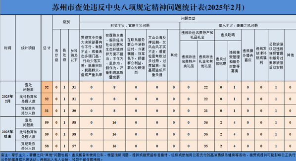 为掌握全市贯彻落实中央八项规定精神情况,市纪委监委在各县级市(区)和市级机关、市属单位等建立了落实中央八项规定精神情况月报制度,每月定期向社会发布全市查处“四风”问题情况,释放落实中央八项规定精神越往后盯得越紧、执纪越严的强烈信号,推动党风政风和社会风气持续好转。2025年2月,全市查处违反中央八项规定精神问题情况如下:
